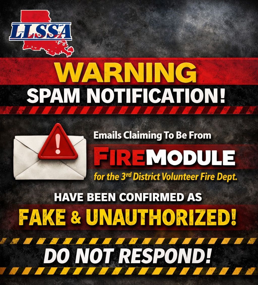 If you or your company receive a similar email requesting that you create a FireModule account or submit inspection reports through their platform, do not comply with the request until the matter is verified through official channels. Instead, members are encouraged to forward the message or report the incident to the Complaint Division of the Louisiana State Fire Marshal’s Office so the issue can be investigated and addressed.